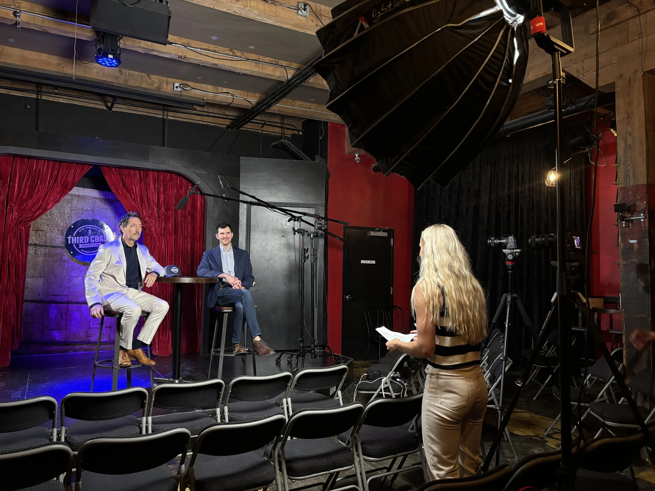 So that's, can I do one of the questions? Can I answer one of the questions? Sure. Great. Can I answer the same question? Yeah. Okay. Is that how Alright, great. Great. Good, good. Okay, great. Uh, my name is Scott Field, co-founder, co-owner of Third Coast Comedy Club, a venue that's been open for almost nine years.